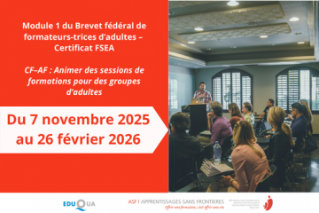 Nouvelle Module Il est le premier des cinq modules du Brevet fédéral de formateurs et formatrices d’adultes. Cette formation prépare à l’...