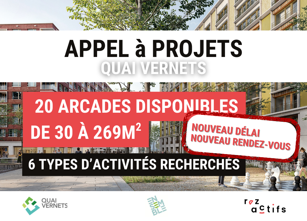 Dans le cadre de la création du futur quartier Quai Vernets, l’équipe ENSEMBLE lancent un appel à projets pour l’attribution de 20 arcades (30 à 269 m²) destinées à accueillir des activités contribuant à la vie du quartier.
