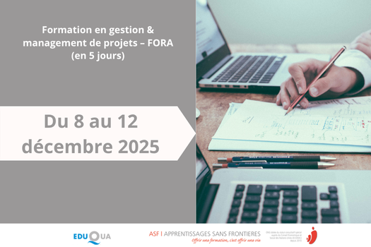 Nous vous proposons un cours en gestion de projets, basé sur la méthode du cadre logique FORA (Finalités, Objectifs, Résultats, Activités).
