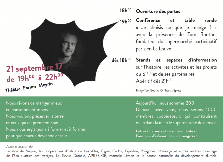En partenariat avec des associations et coopératives de la région (La Revue Durable, Après-Genève, Monnaie Léman,...), l'Association de soutien du Supermarché Participatif Paysan souhaite montrer que grâce à une véritable économie sociale et solidaire (où la coopération remplace la compétition), nous pouvons proposer de meilleurs produits à de meilleurs prix en rémunérant mieux les paysans. Nous voulons contribuer à créer l'économie de Demain. Il n'y a pas meilleur point de départ que de s'approprier notre consommation !