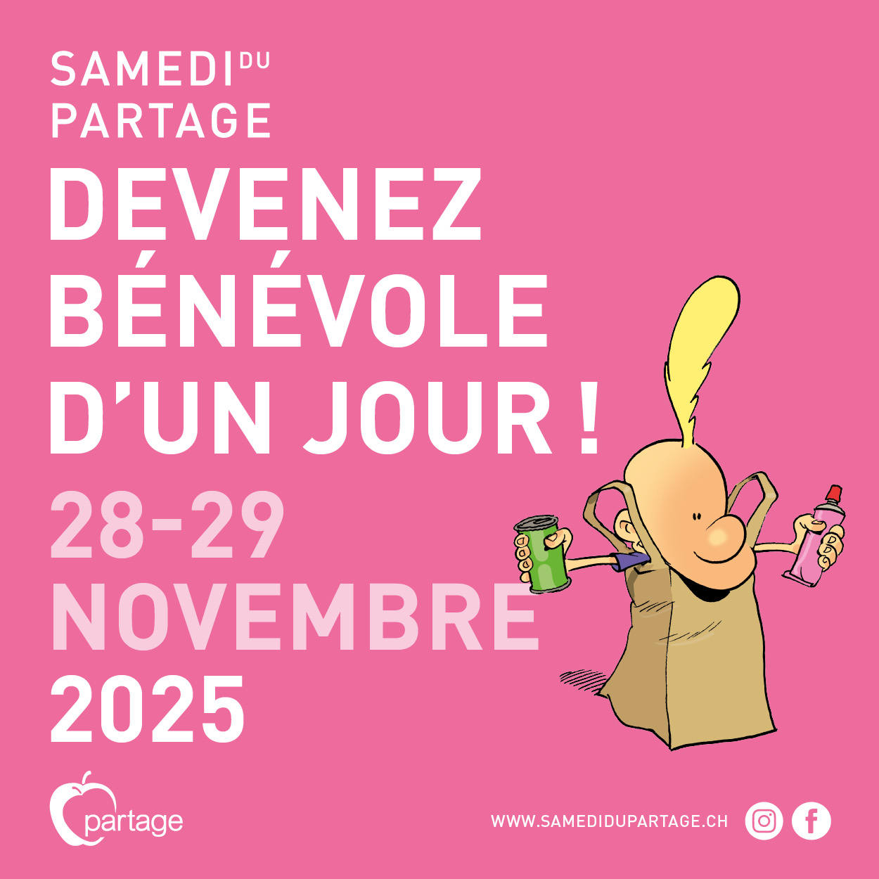 Plus d’infos au 078 692 90 80 ou sur benevolat@partage.ch