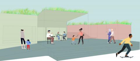 La Soliderie ouvrira en septembre 2023. Cette petite place publique sera bordée d'une épicerie solidaire, réservée aux personnes en situation de précarité du district de Nyon, et un café tous publics, dont les bénéfices soutiendront l'épicerie.