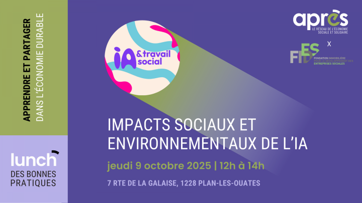 L’économie sociale et solidaire est un véritable laboratoire de pratiques innovantes et durables. Après un premier lunch organisé en mai 2025, nous poursuivons la réflexion autour de l’intelligence artificielle en partenariat avec la FIDES, qui accueille cette nouvelle édition dans ses locaux. Cette rencontre mettra en lumière les impacts sociaux et environnementaux de l’IA. L’accent sera porté sur les dimensions écologiques (coût énergétique, infrastructures, déchets…), mais aussi sur les conséquences sociales globales de ces technologies.
